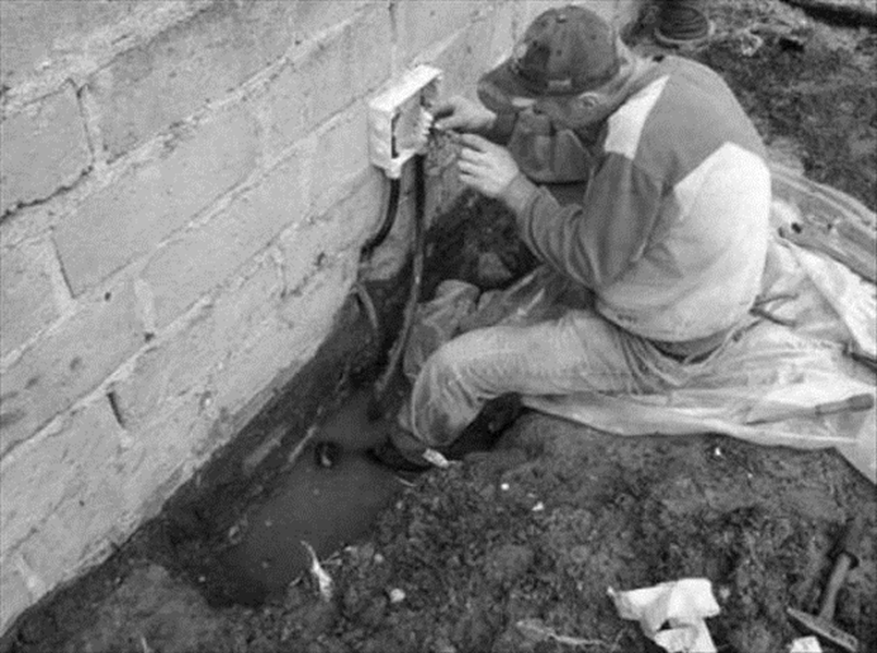 ¿Qué hay de malo en esta imagen? Hay un trabajador que está en contacto con un conductor eléctrico expuesto o parte de un circuito y sus pies están bajo el agua. Esto puede causar problemas cardíacos, espasmos musculares y pérdida de la respiración. Este tipo de lesión es más grave y a menudo puede acabar en la muerte.