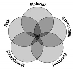 The simple model shown in Figure 1 attempts to illustrate that the causes of any incident can be grouped into five categories – task, material, environment, personnel, and management. When this model is used, possible causes in each category should be investigated. Each category is examined more closely below. Remember that these are sample questions only: no attempt has been made to develop a comprehensive checklist.