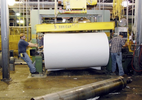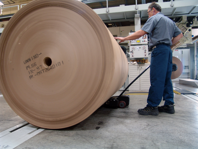 These paper rolls weigh about 3,000 pounds. Just imagine how much stress it puts on the worker’s back, shoulders, arms and wrists to roll these monsters by hand—especially across a concrete, sloped floor that’s pocked with holes and latticed with roll stand tracks! It’s a musculoskeletal disorder (MSD) just waiting to happen.